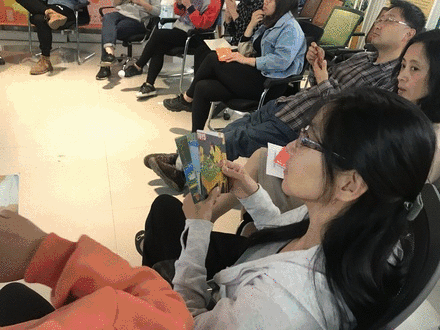 游戏开始,伙伴七嘴八舌的开始与周围的人讨论卡片内容,但由于人数较多,这样的沟通方式并没有让每个人都了解到别人手中卡片的内容。