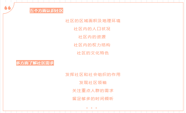 随后,许老师为大家分享了开展社区调研的基础--如何认识社区,并重点讲解了如何去了解社区的需求。