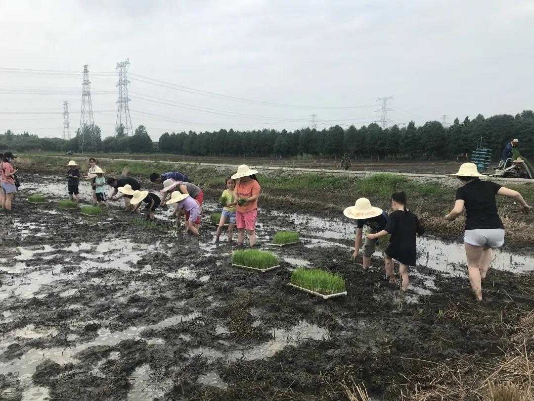 终于可以实践了,大朋友们带着小朋友们光着脚,在稻田里面进行插秧活动,这一刻,大家都完美地化身小农夫大农夫,认认真真的在农田里辛苦耕耘,感受劳动的艰辛与不易。