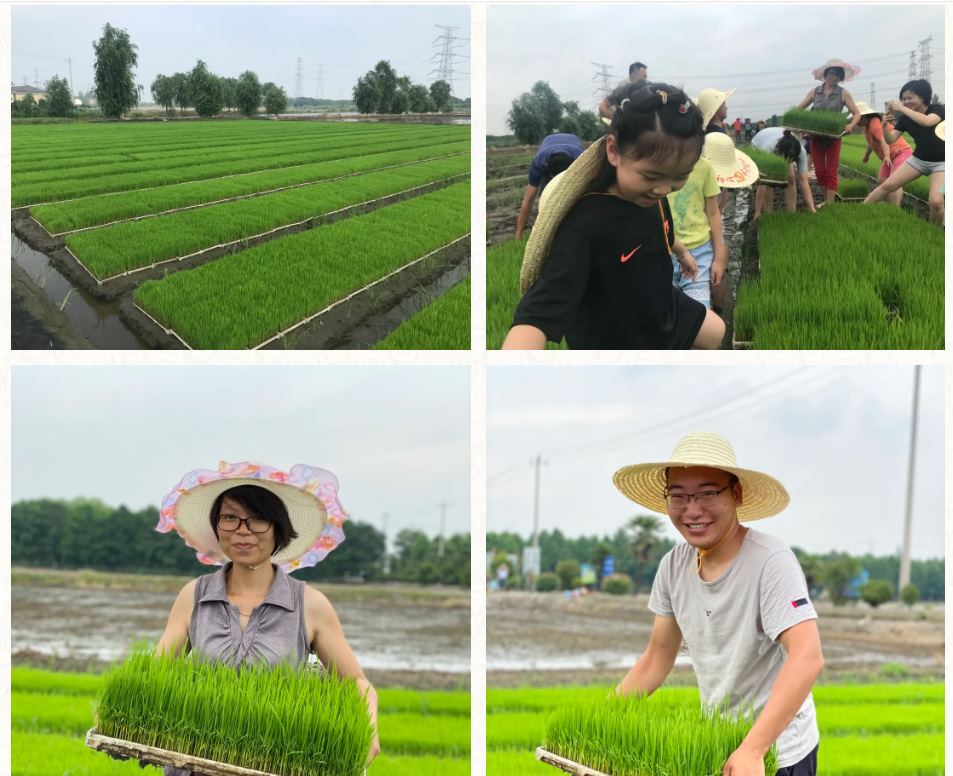 徐场长的分享之后,乐仁社工带领亲子家庭来到田间,来到育苗稻田,向大家讲解了秧苗的生长习性,比如插秧后的秧苗需要5-7天的时间休养,养好根系,同时讲解了插秧时需要注意的一些事项:合理密植,保证田间基本苗数、插秧深度2厘米以内、要求秧苗栽的正,不要东倒西歪、插秧行要直,秧苗栽的直、插行穴距规整,每穴苗数均匀、插到头、到边,格田四角插满插严。