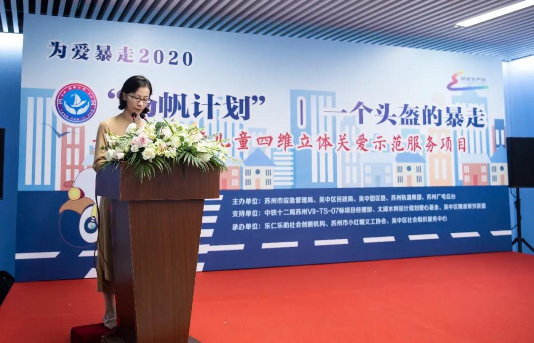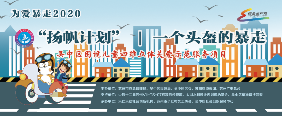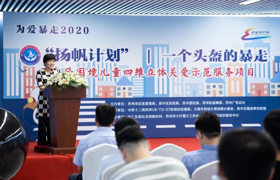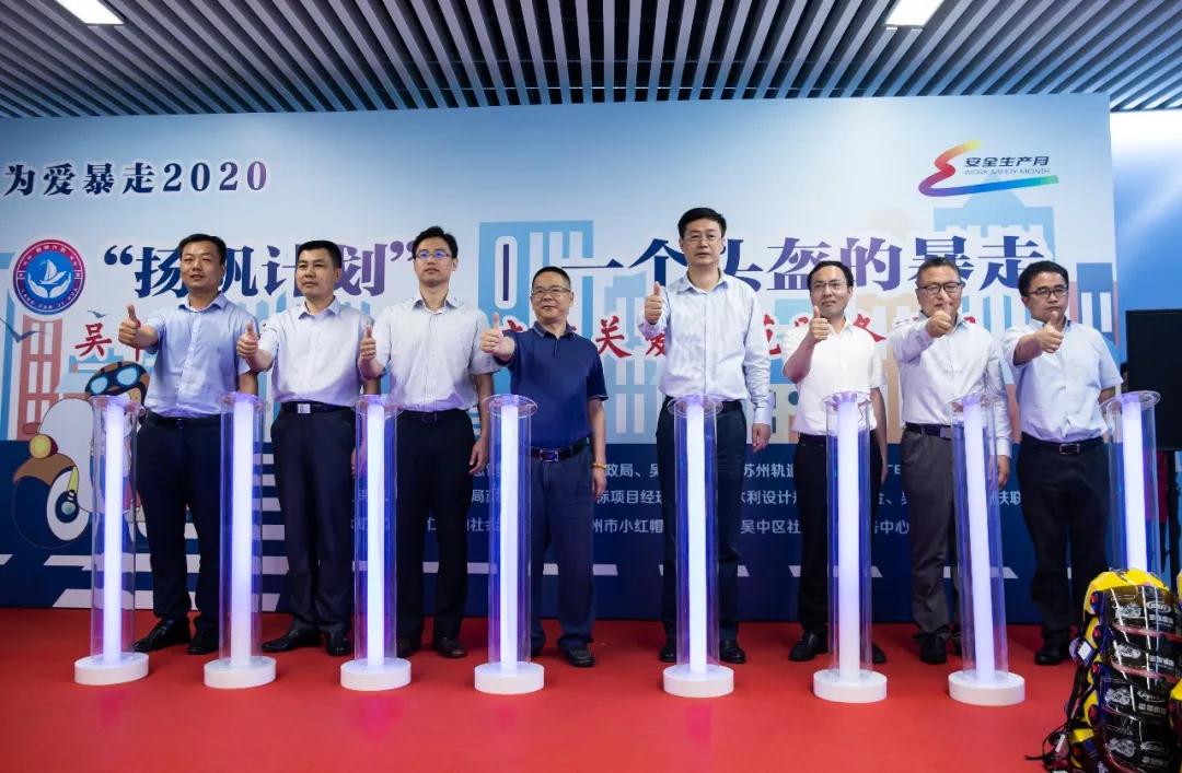 苏州市应急管理局局葛卫副局长、苏州市轨道交通集团有限公司庄群虎总监,吴中区委宣传部马唯杰副部长、吴中团区委陈旻书记、吴中区民政局胡立才副局长、中铁十二局苏州VII-TS-07标项目经理部左世波书记、江苏太湖水利规划设计研究院有限公司工会柏铭君副主席,吴中区精准帮扶联盟轮值主席、苏州东瑞制药有限公司爱心基金徐春秘书长共同启动“一个头盔的暴走”,一起守护困境儿童健康成长。