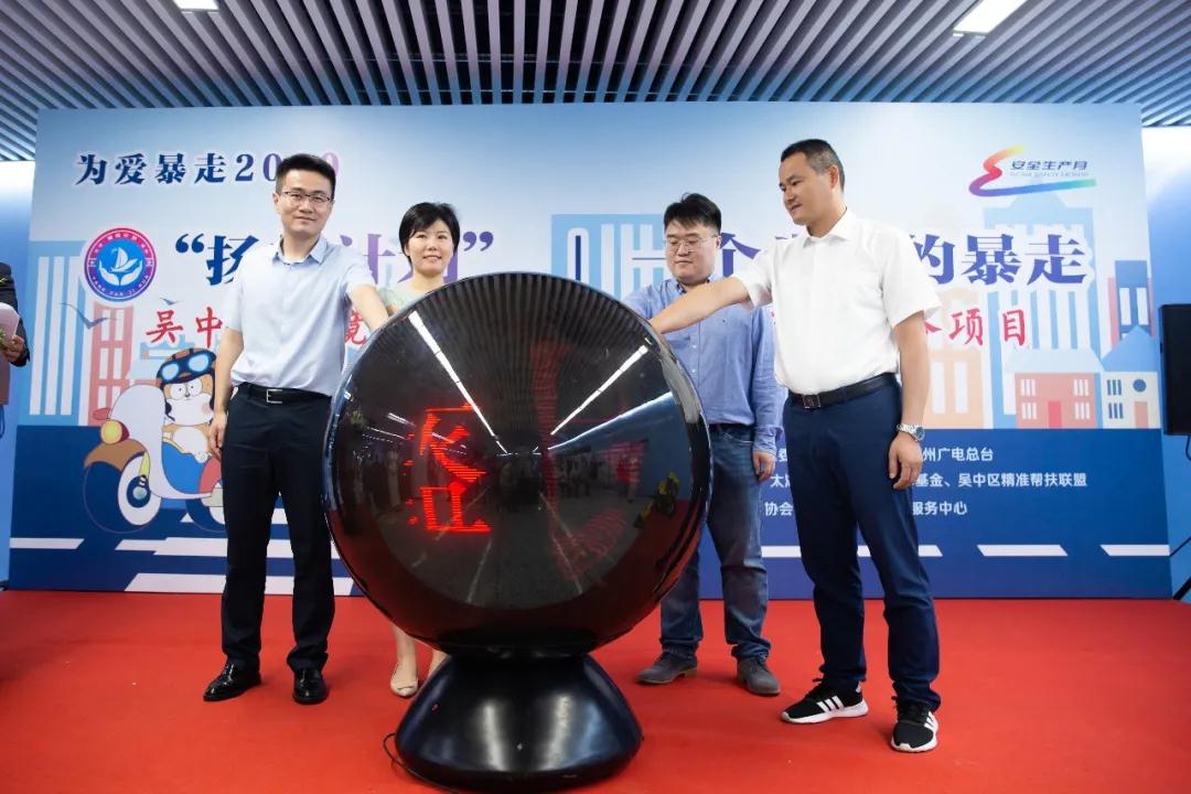 苏州市应急局机关纪委陈宏志副书记、苏州市轨道集团团委翟愈涵副书记、吴中区民政局颜文副局长、团区委向兢副书记共同启动“一个头盔的暴走”线上平台。通过我们的公益项目,每天多走几步路,不仅锻炼身体,更可以给公益事业多一份支持。也借本次活动为契机,倡导大家在朋友圈晒出我们捐步的爱心,号召身边的同事、亲友一起加入到“一个头盔的暴走”中,共同为困境儿童奉献爱心。