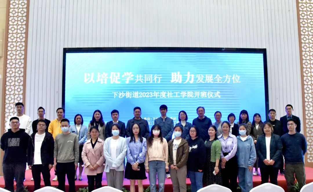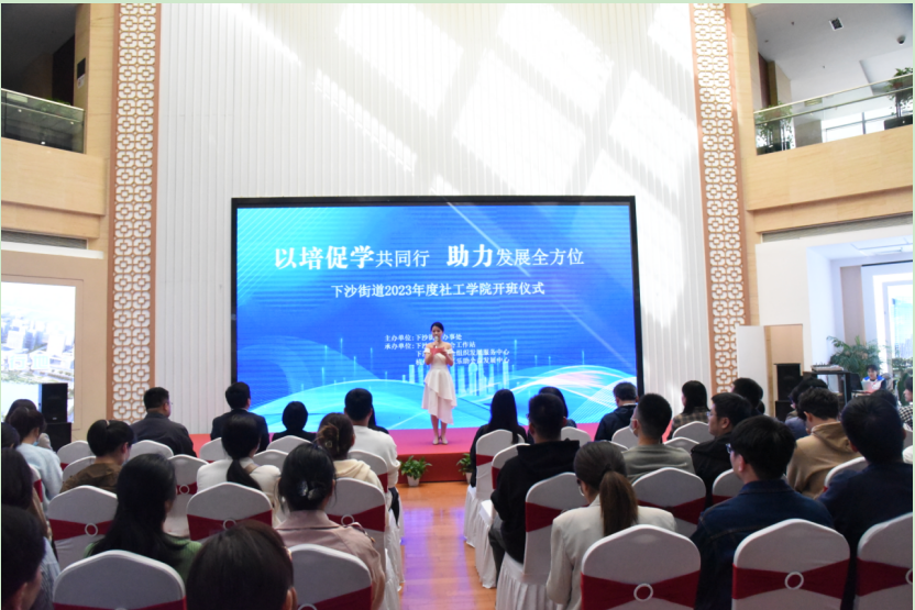 为进一步提高下沙街道社区工作人员的理论素养、业务水平和实践能力,推进辖区社区工作人才队伍的职业化、专业化建设,满足辖区居民日益增长的多样化、个性化服务需求,积极探索以“五社联动”为主要内容的社区治理新机制,4月12日下午,“以培促学共同行 助力发展全方位”下沙街道2023年度社工学院开班仪式,在街道党群服务中心举行。下沙街道党工委委员蔡晓琦、办事处副主任俞丹、公共服务办公室相关负责人,以及高校老师、专家和各社区党组织书记、社工代表等近80人参加活动。