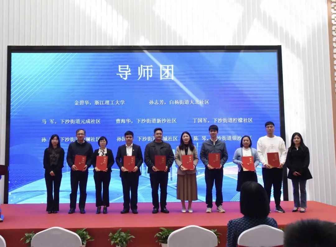 下沙街道党工委委员蔡晓琦致辞。她指出:近年来,下沙街道将一直坚持党建引领,不断创新举措,积极推进社工人才队伍建设,通过实施社工素质提升工程,为社工提供职业能力提升平台,全力打造“一人多岗、一专多能”地复合型社工队伍,为社区建设发展提供强有力的人才支撑。下沙街道社工学院自2019年建立以来,始终围绕社区负责人、社区后备人才、普通社工,开设“聚沙·头雁讲堂”、“聚沙·鸿雁课堂”、“聚沙·青雁学堂”,针对全街道社工进行集中式综合素质提升。今年,下沙街道社工学院特别邀请高校专家、辖区内外社区党组织书记、高级社工人才组成导师团,旨在为社区社工提供更好的支持和指导,助力街道加强专职社区工作者队伍建设,着力构建专职社工队伍分层分类培养体系,优化社区工作者队伍结构,提升专职社工整体水平。