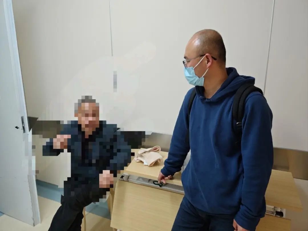 到达昆山市区某医院后,家属由于情绪和能力问题无法高效处理急救相关事宜,在医护人员的要求下,社工协助办理住院手续、取药、转运、擦身、打针、插管、购买住院所需护理用品等。家属送院匆忙,未来得及携带衣服等生活用品,服务对象在抢救中冷得浑身发颤,社工将自己的外套盖到服务对象身上御寒取暖。
