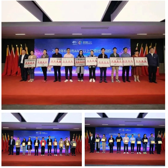 活动现场还对2022年获评杭州市4A及以上等级社会组织、2022年余杭区十佳社会组织、2022年余杭区社会组织领军人才进行嘉奖表彰,市、区民政领导为获奖单位和荣誉个人授牌并颁发荣誉证书。