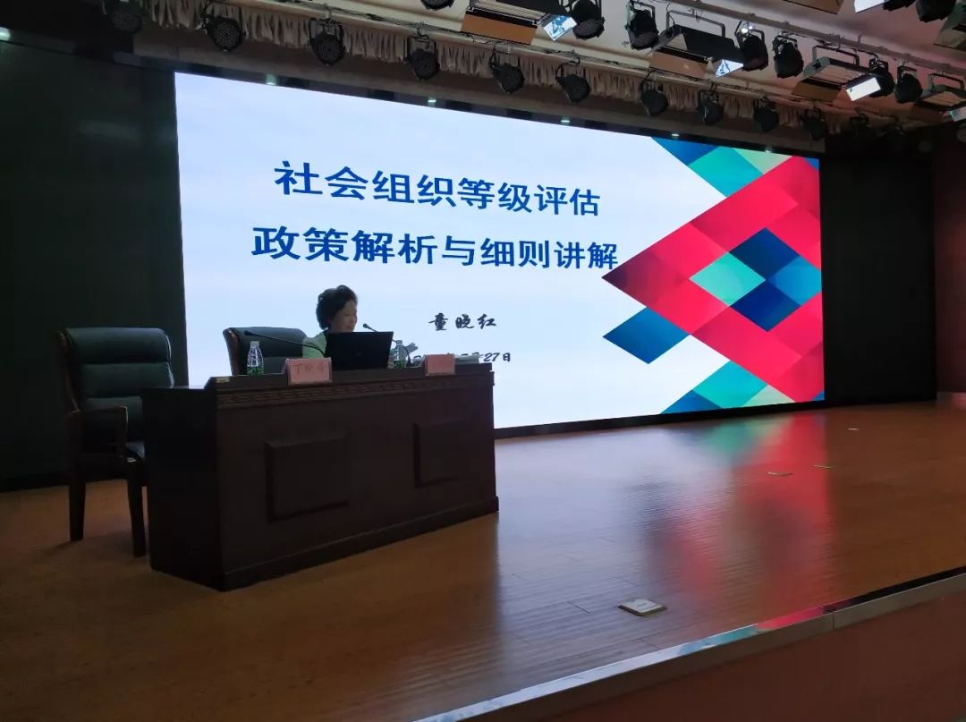 本次活动还特别邀请到了苏州市社会组织促进会秘书长童晓红老师,为现场的社会组织代表开展了等级评估工作的培训。童老师根据她在苏州市的社会组织评估经验结合南通市的等级评估要求对南通市社会组织等级评估进行了政策解析与细则讲解,针对社会组织在申请时容易疏忽的注意点进行了总结与讲解,她重点详细解读了行业性社会团体及民办非企业单位的评估评分细则,对社会组织如何做好备查材料进行了说 明。