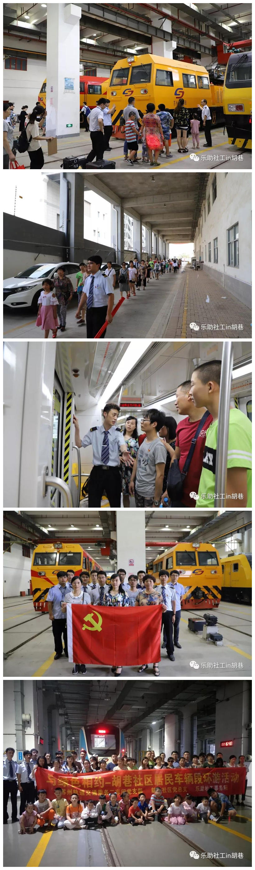 7月29日上午九点二十分左右,活动人员集合完毕,在带领队伍前往骑河站过程中,不少党员同志帮着工作人员维持队伍秩序,保障其他活动成员的安全。到达目的地后,以十人为一个小组,由轨交党员带领开始车辆环游。轨交党员发挥他们的职业特长,从地铁正常运行到接触网对地铁的重大作用,从地铁停放到其检修,每个内容讲解的仔细认真,又很有耐心的解答居民提出的疑问。车辆安全知识解读过程中,所有成员进入地铁车厢,工作人员为居民进行了安全讲解,对车厢内的每个安全装置和紧急按钮做了详细说明,不少居民还在地铁操作室拍照留念。