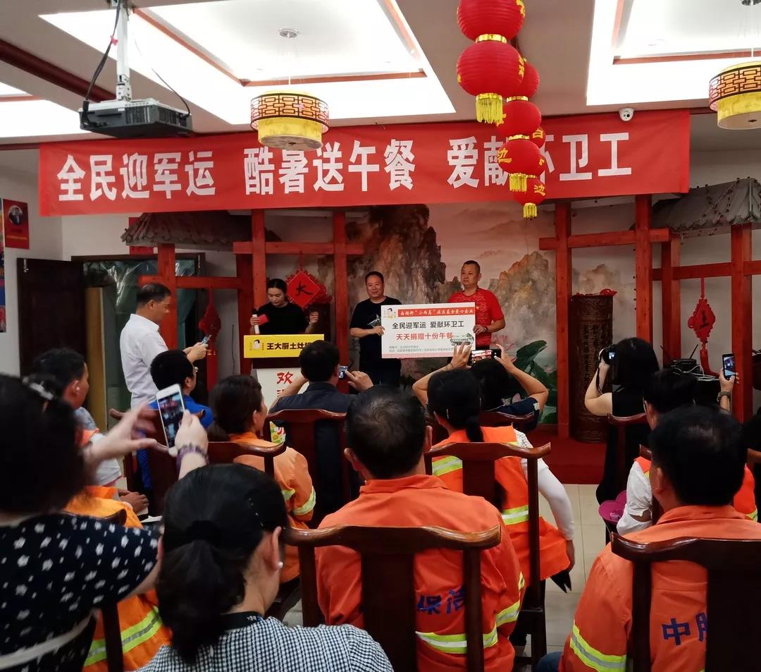 今天上午11:00,南湖街“小而美”社区基金——“全民迎军运、酷暑送午餐、爱献环卫工”的活动在南湖街王大厨土灶台饭店内举行。活动现场,饭店经理将“小而美”爱心午餐的长期支票赠与南湖街代表,标志着自今日起,饭店将每天提供免费午餐赠与环卫工们。