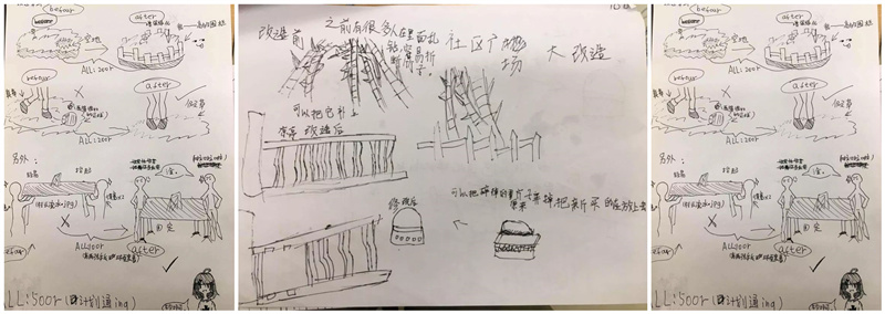 最后小朋友们整合在广场所看见的问题并提出了改造建议,然后在画纸上画出改造前后对比图,非常具有参考价值。