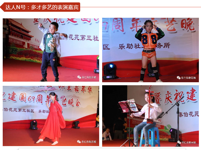 “友邻友趣 幸福社区”邻里嘉年华暨庆祝建国69周年文艺晚会是居民们的舞台,他们在这里展示才华、秀出自信,共同为祖国母亲送上祝福。这样一群可爱的居民,我们是不是该为他们点赞呢?