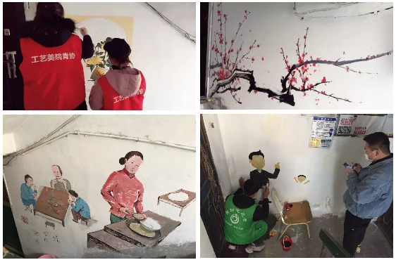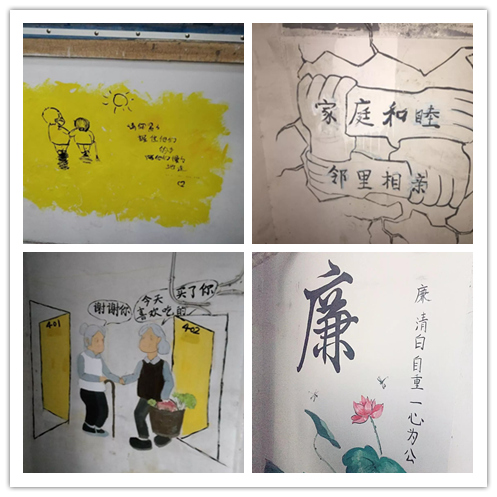 苏州工艺美术职业技术学院青协志愿者给两个先行试点楼道带来了特色的楼道文化:德韵初心、传统文化,并得到了各个年龄层的楼道居民的喜爱。