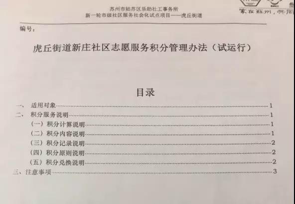 为进一步调动社区居民参与社区志愿服务的积极性,完善社区志愿服务工作,满足志愿者个人与团队的成长,现虎丘街道新庄社区协同乐助社工推行《虎丘街道新庄社区志愿服务积分管理办法(试行)》(以下简称《办法》)。