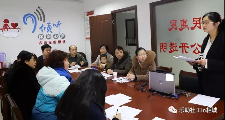 会议开始,社工介绍本次会议的流程,并且总结了2018年度联络员的表现与成果。