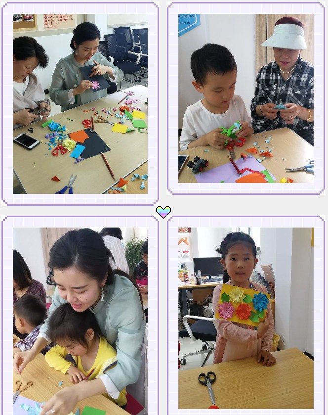 上午,亲子手工花制作,孩子和家长们一起,在社区手工达人邓小姐的指导下,完成自己独一无二的作品。
