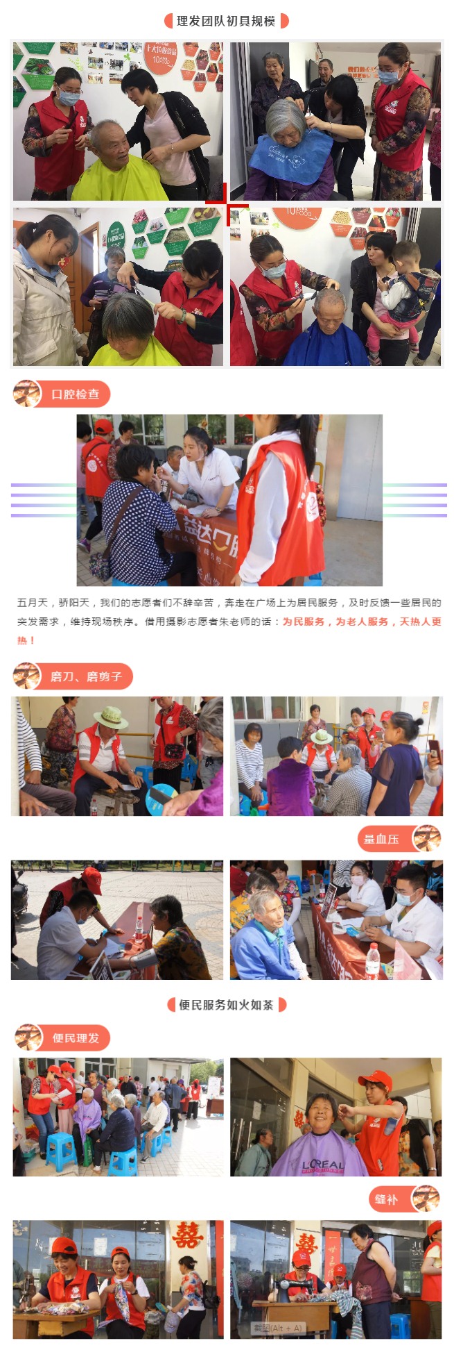本次便民服务共有量血压、磨刀,磨剪子、理发、缝补、口腔检查等五类服务,共有18名志愿者参与,服务村民120人次。