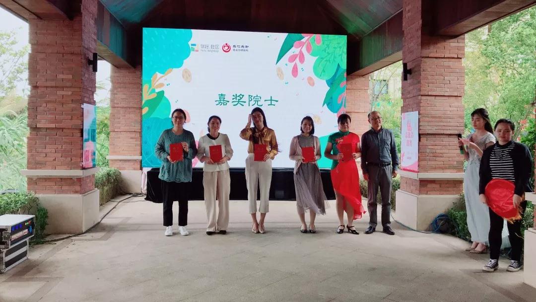 本次社区公益日首先由正荣书院运营方总结回顾了由正荣公益基金会支持的“你好社区”公益项目两年来的开展情况,项目通过利用正荣书院和正荣认知园两个平台,开展社区活动、建设社区社会组织、挖掘居民资源、以及协助居民开展协商参与等工作,丰富居民生活,提高小区居民的获得感和幸福感。 随后由正荣公益基金会的副秘书长、乐仁乐助社会创新机构的秘书长共同为正荣国领花园小区的“正荣院士”颁发荣誉证书、为社区组织队伍授旗。院士证书的颁发和组织队伍的旗帜的授予,不仅是对他们为社区公益做出贡献的认可,也是鼓励和号召更多社区居民一同参加社区公益活动。
