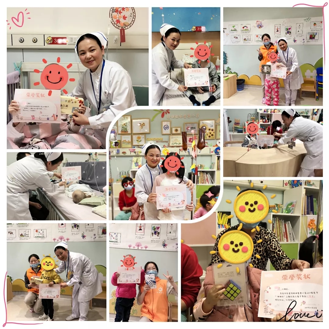 在这个温馨的仪式上,我们邀请了血液科温柔可亲的吴护士长作为颁奖嘉宾,给孩子们颁发了证书和奖品,小小的仪式给了孩子们更多鼓励。孩子们拿着期待已久的奖品,收获满满的成就感。