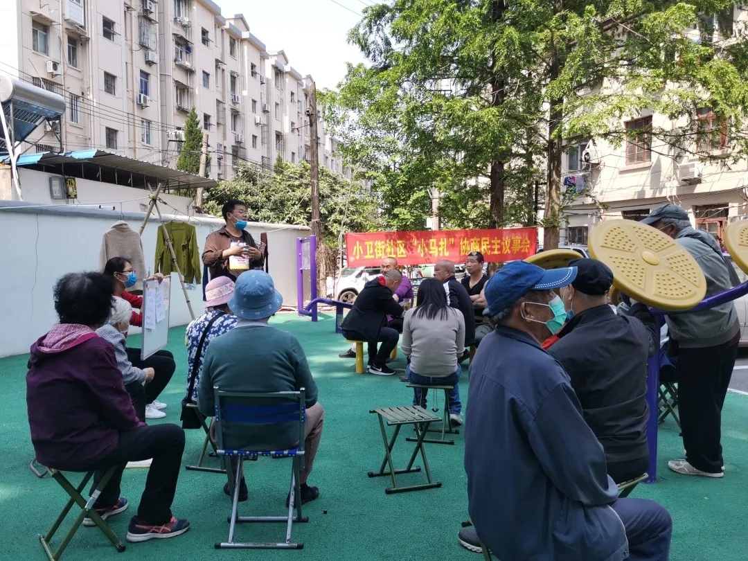小卫街社区69号小区住户原本都是724所员工,但长期处于无人管理状态,且大多房屋被出租,小区目前出现垃圾无人清扫、停车位被占用等问题。为解决小区长期失管情况,4月30日上午,小卫街社区联合乐仁乐助社工事务所在69号小区健身广场开展了第一次小马扎居民议事会,对主要围绕是否要成立业主委员会以及后续工作如何开展两个问题进行商讨。