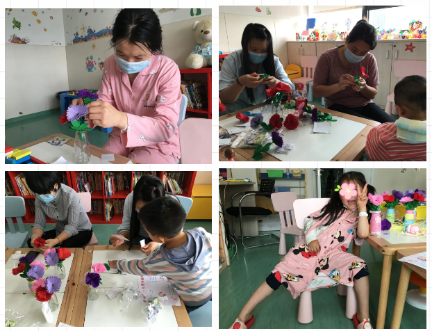 制作现场,大朋友们专注认真,这些手工对他们而言很简单,原来孩子们的幼儿园作业也是家长的手工必修课。看到多彩的花朵成品后,小小的成就感与满足感,自然而然地让心情舒适与喜悦。