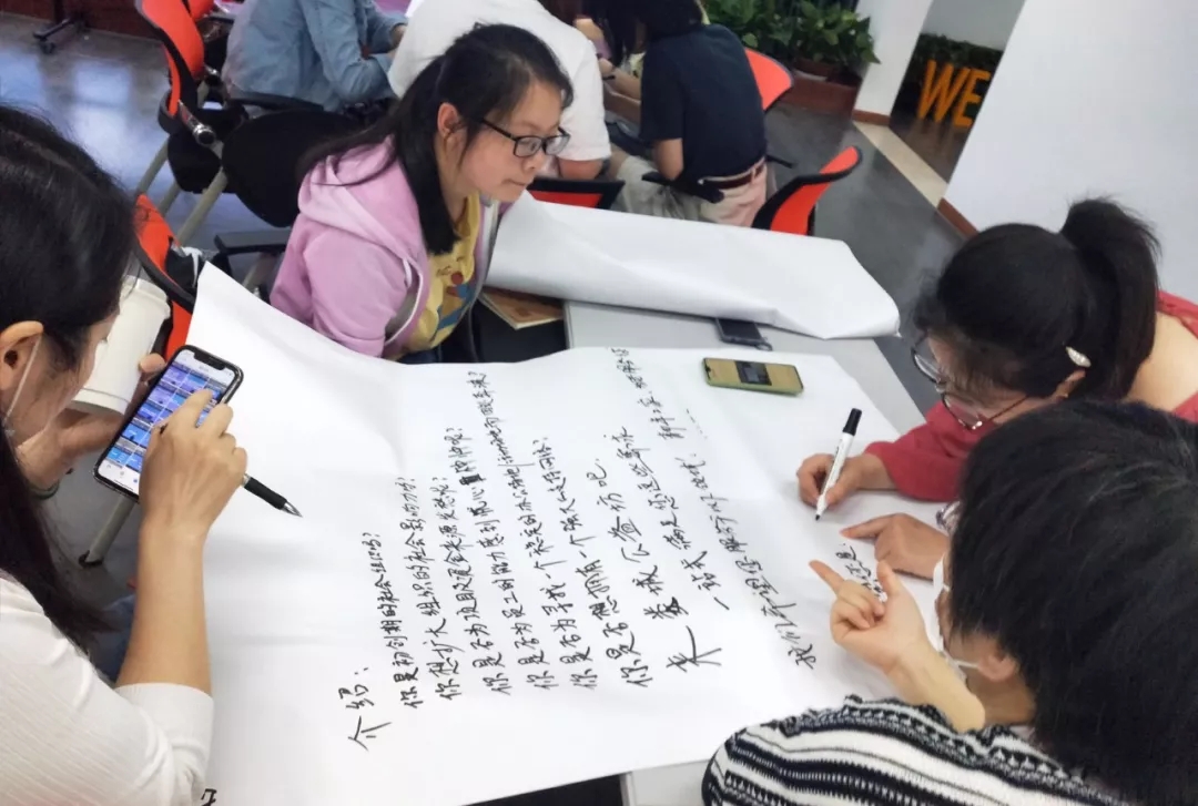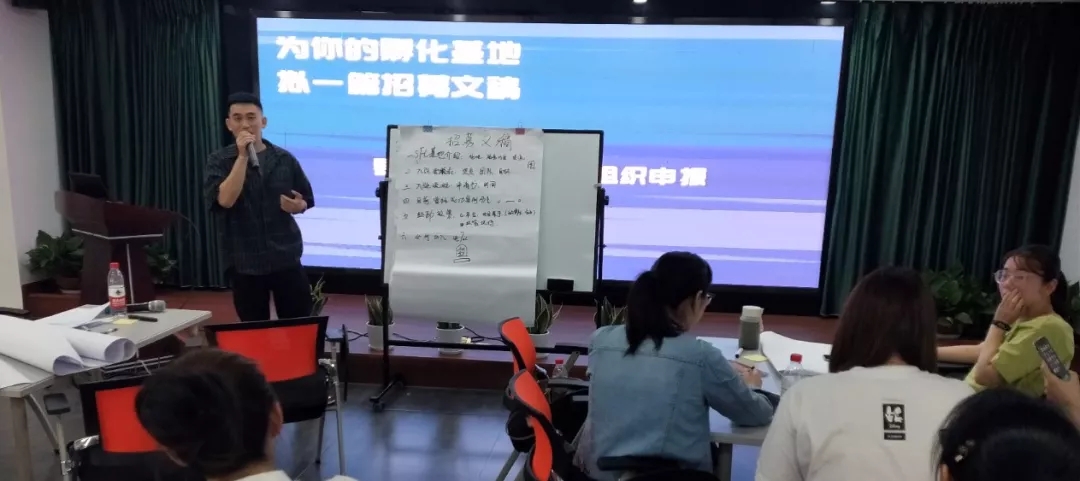 最后,老师组织学员们进行实战模拟,为自己的孵化基地拟一篇招募文稿,各小组成员纷纷献言献策,根据孵化基地不同定位、创立阶段机型模拟演练。
