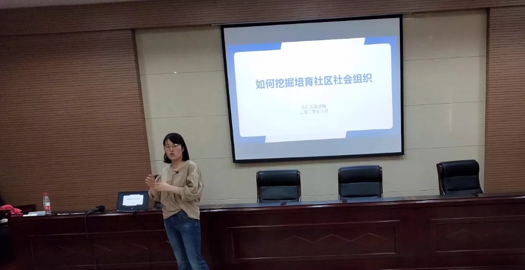 上午的主题培训中,洪梅老师从相关概念、挖掘培育方法技巧、社工角色与操作和案例分析等四个板块为大家详解了“如何挖掘培育社区社会组织”。