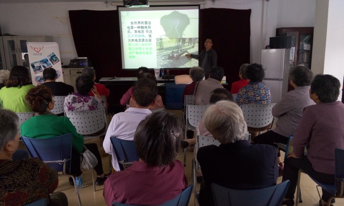 本次活动是该组织开展的“家庭急救知识讲座”活动之一,主要通过家庭急救SOS培训,达到年老病残家庭成员学会各类家庭生活急救技能。首先,唐老师给大家播放了一个十多分钟关于突发性心血管疾病的案例,来引出本次的主题——常见意外的急救。之后,唐老师挨个的讲了关于触电、溺水、烧烫伤、中暑、食物中毒、蛇毒、被狗咬伤、乙醇中毒、煤气中毒和关节扭伤等家庭中常见的意外情况,并详细的讲解了遇到以上情况后的急救措施。期间,唐老师通过与老人的互动,让大家更清楚的了解这些状况的具体情况及急救的技能。