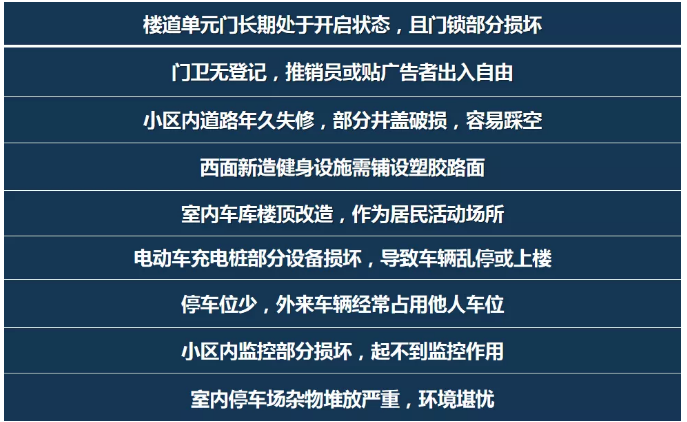 在大家积极参与沟通下,与会人员认识到了目前迫切需要解决的焦点议题。在社工的带领下,充分考虑议题的可操作性、紧迫性、受益范围等因素,大家针对9类初步议题进行投票,社工选取了三项票数最多的议题,最终形成议题清单,议题如下: