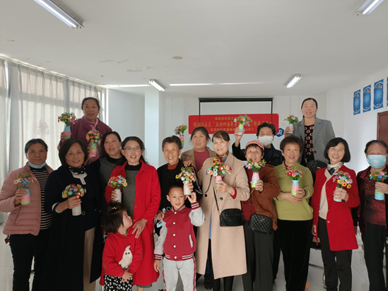 在心灵手巧的阿姨们共同努力下,没一会儿,各式各样的纽扣花便呈现在眼前,各有特色又美的如一。阳光的映衬下,花美人更美。
