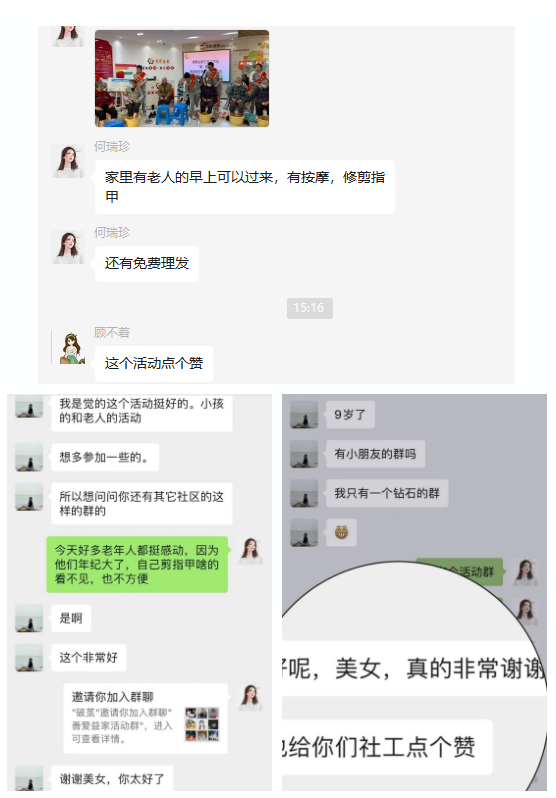 此次便民服务活动吸引了29位老年人前来参加,热情周到的服务赢得了老年人们的赞许和肯定,不仅发扬了尊老爱老的传统美德,而且还践行志愿者的服务精神。此次活动的开展,让老年人们深深地感受到社区大家庭的温暖,体验到晚年生活的幸福,此外,也可以实现老年人人际交往的需要,有利于老年人的身心健康发展,营造和谐、幸福社区。