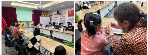 “润芽成长,创意巧制”亲子互动活动:为了让辖区内的亲子家庭过一个多彩的闲暇生活,增强儿童的动手能力和思维能力,特举办此次活动,让儿童在制作马赛克杯垫的过程中体验幸福感与满足感,同时也提供一个家长互相交流的平台,拉近了家长之间的交流互助关系,共同助力儿童健康、全面、快乐成长。