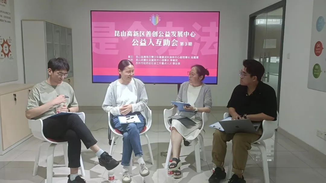 面对辖区内社会组织的各类实际需求,善创中心开设了公益人互助会,以一种新的方式去回应,由公益人帮公益人。2024年8月,“是个办法”公益人互助会第三期顺利开展,本期邀请到了昆山益鹿有你青少年健康成长服务中心副理事长陆霞菁、昆山启爱社会服务中心理事长季春奕、苏州市姑苏区社会工作重点人才缪佳俊共同探讨“低经费、重专业、高要求,小机构如何生存”。