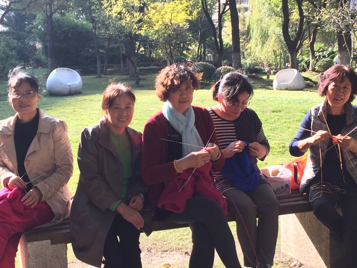下午一时许,手工坊的几位阿姨陆续来到,起先在社区活动室里,大家互相交流各自毛衣手套等的针织进度,针织的美感等,看到户外阳光明媚,大家提议到户外去织毛衣,晒太阳。阳光正好、景美、人美、欢乐多,工作人员为大家拍下了一张张唯美的照片,在手工坊的微信群里分享大家的照片后,因有事儿没能赶来的阿姨打来电话来表示很遗憾来不及聚在一起,对大家聚会打毛线的形式表示很喜欢。