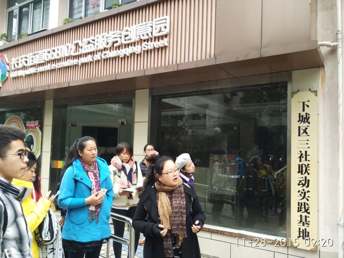 经过一夜的休整,11月28日,全体参访学员开启了满满一天的行程。第一站是杭州下城区长庆街道66810公益服务创意园,这里是由乐仁乐助杭州团队负责技术服务体系部分,更是作为下城区三社联动的实践创意基地,旨在成为跨界合作的联动平台,完成创新、创意和创业的公益使命。参访全程,都由杭州乐助负责人叶子陪同介绍。