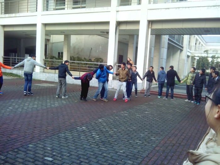 此次的培训通过团体活动的形式进行。培训开始,培训老师首先让参与培训的每个成员向大家自我介绍,讲明此次培训的主题、目的,随后由青协会长带领大家到户外进行团体活动。培训老师带着大家做了三个团体活动,分别是“抢位置”、“穿衣服”和“解开千千结”。“抢位置”的破冰活动起到了很好的热身效果,打破了成员之间不熟悉的尴尬场面。紧接着培训老师又以“穿衣服”的活动为大家讲解了团队沟通力的重要性和促进团队沟通的方法。最后大家一起参与了“解开千千结”的团体活动,同学们积极参与,现场气氛火热,参与活动的成员表示这种团体活动很有意思,能够带动大家之间的沟通,拉近彼此之间的距离。