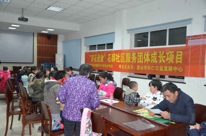 2015年12月11日,周市镇社区公益助力计划支持项目——“百花竞放”花都社区服务团体成长项目之社区“周五晚”亲子俱乐部活动在花都社区二楼顺利举办。与圣诞月相呼应,本次活动内容为手袋手偶和圣诞杯子制作,吸引了社区近30个家庭的参与。