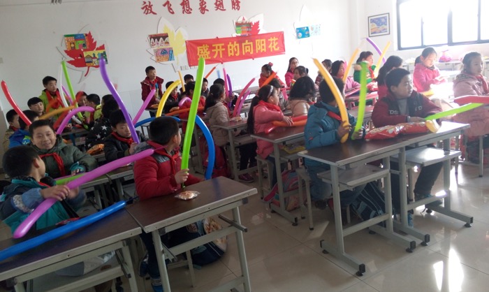 本次活动是该项目“同龄人 一起走---拥有小伙伴,让城市不再孤单”活动之一。首先,老师向大家展示了自己用起球做的不同的造型;其次,老师给大家一人发了两个长起球,并展示了用一个起球做的“剑”,开始一步一步地交大家做,做完后,让大家展示;之后,老师给大家展示了“小狗”,小朋友都很喜欢,认真的跟着老师学,并都做了出来;最后,老师跟大家一起分享了捏气球的收获,并给认真制作的小朋友发了老师做的起球。