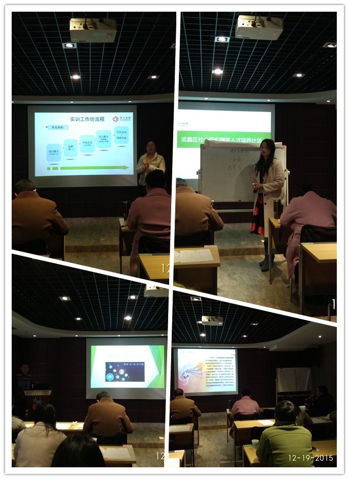 2015年12月19日,由武昌区民政委主办,武昌乐仁乐助社会创新中心承办的武昌区社会组织精英人才培养计划的第二次培训开讲啦。此次培训的主题是“可持续的项目挖掘与筹资”。借着即将于本月26日举办的杭州创客路演大会的东风,本次培训旨在帮助各位社会组织精英们理清项目和商业相结合的思路,寻找出让项目可持续的切入点,故特请来乐仁乐助社会创新机构的联合创始人魏晨老师分享他的经验。