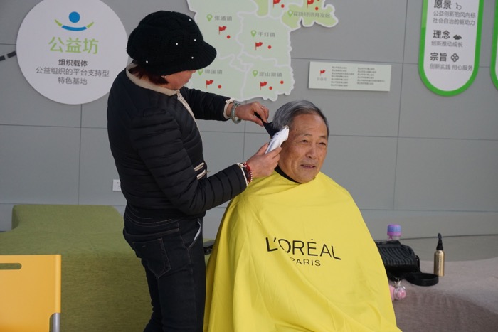 2016年1月7日上午,志愿服务活动之公益理发活动在创新中心一楼顺利开展。活动邀请到了周市镇嘉禾社区热心公益理发师左师傅前来为社区居民理发,作为创新中心的第一次公益活动,吸引了周边十余位居民前来理发。