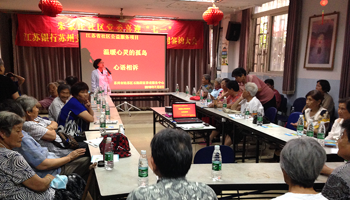 2015年7月2日, 姑苏区乐助社工事务所的工作人员来到姑苏区朱家庄社区,现场监管江苏省社区公益服务项目创投中标项目温暖心灵的孤岛——孤老慢性病健康关爱行动。