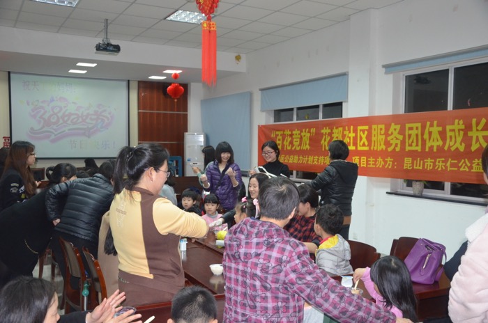 2016年3月4号,在妇女节这个特别的节日即将来临之时,周市镇社区公益助力计划支持项目——“百花竞放”花都社区服务团体成长项目之亲子俱乐部活动在花都社区会所二楼顺利开展,在社区居委会的协助下,活动设计了“感恩俺妈妈的爱——手膜DIY”,“感恩贺卡DIY”,和“赠人玫瑰”等环节,吸引了20余个家庭参与。