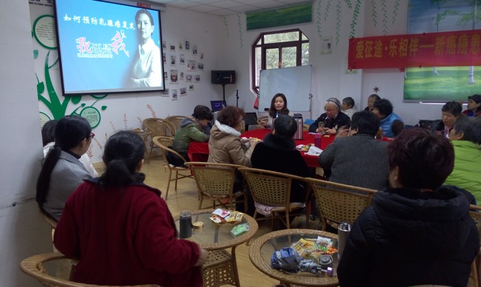 本次活动是该组织开展的“爱相助”活动之一,这是一系列和癌症先关的讲座,其主要目的是通过邀请医学专家来给大家分享关于癌症康复和治疗知识方面的知识,让大家得到更有针对性的意见和借鉴。早上九点半,大部分服务对象到后,医生开始了本次的专业讲座——乳腺癌的复发。专科医生通过讲解什么是乳腺癌、乳腺癌复发时应该怎么样、局部复发、全身转移症状、术后放疗、如何吃药等多个方面为大家讲解。今天的服务对象都是乳腺癌的患者,大家认真的记录医生讲的知识,同时与医生交流沟通自己的检查单,对自己的病情了解的更透彻。