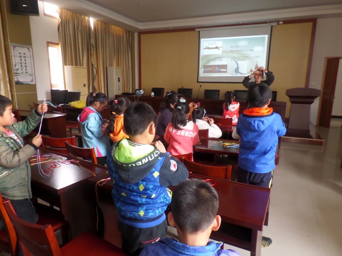 活动正式开始前,学员在工作人员的带领下,回顾了上周的活动内容。同时为锻炼手部灵活性,学员跟随工作人员共同做起手指操。随后,工作人员讲解如何打安全结及编织手链的方法并做详细演示,学员们按照步骤说明,编织自己的绳子。
