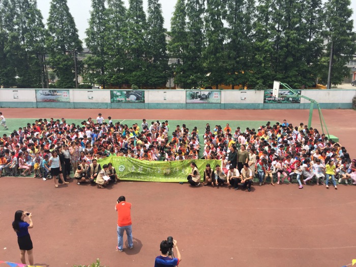 参与本次活动的是项目方苏州市吴江区蓝天环保志愿者协会在团结小学实施项目活动的所有受益人,约有500人。活动在学校的操场上开展,为了记录这场活动,项目方邀请了专业的摄影师,准备了专业的音响设备。