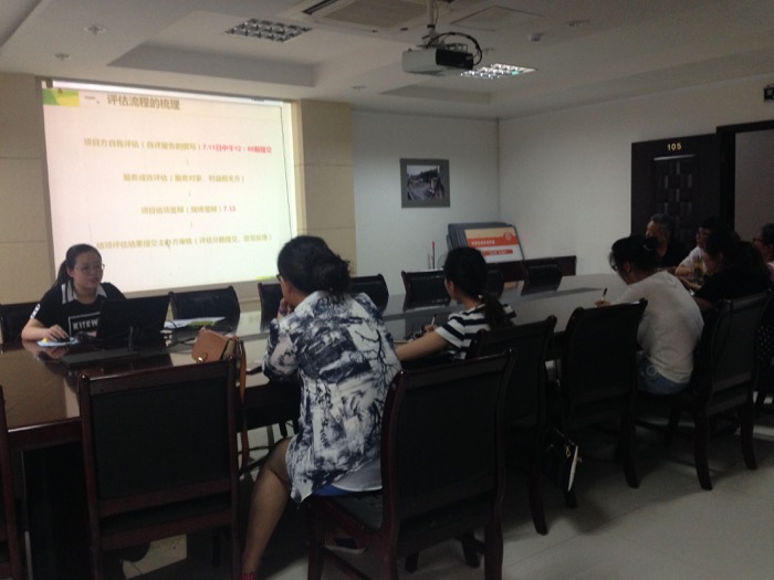 2016年6月24日下午,姑苏区乐助社工事务所的工作人员在石路街道金阳光公益坊105室开展了2015年江苏省社区服务项目结项评估培训会。