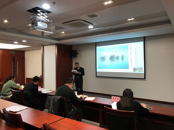 本次入驻评审主要分为两个环节。第一环节是组织自我陈述环节,申请组织有8分钟时间通过PPT介绍组织的当前情况、未来愿景以及希望能够在孵化园获得的帮助等。第二个环节是在组织自我陈述之后,专家对组织进行提问以及提供一些建议,组织代表均认真回答并虚心接受专家意见。