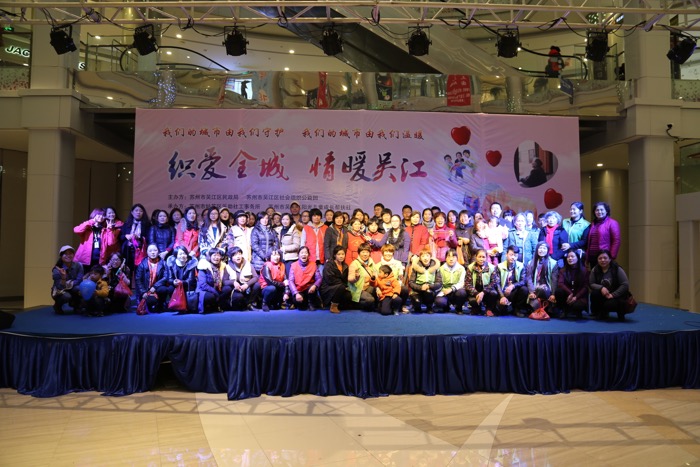 经过精心的前期准备及有效的多方协作,吴江区社会组织公益园“织爱全城 情暖吴江”品牌活动于2016年11月26日在吴江区万宝广场成功启动。这项活动旨在通过政府、社会组织、社区、媒体、企业等部门支持,组织动员社会人士参与,通过捐赠爱心毛线,组织爱心志愿者编织围巾,为他们搭建公益关爱平台,关爱福利院特殊儿童、关爱城市一线环卫工人,关爱社区独居老人等送温暖。