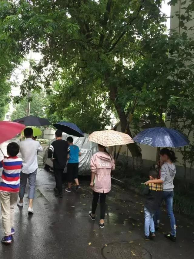 虽然还是下着小雨,但是孩子们的热情不减,在简单的“绳子游戏”后,孩子们兴致高昂地拿起雨伞,和引导师一起走出居委会,开始在社区中探索。从居委会出发,沿着社区植物分布进行探索和记录,孩子们看到了石榴、香樟、枫杨、樱花、水杉多种植物,也成功收集了各种植物的叶片、花。在收集自然物的过程中,孩子们遵循着“不破坏、不多取”的原则,能捡拾落叶的选择捡拾,需要采集的则轻轻采集一片,不对自然造成额外的伤害。跟着引导师,在社区内探索了将近一小时,孩子们一边行走观察、一边在自然记录本上记下行走的轨迹,并标记出相应的标志性建筑物如大门等。