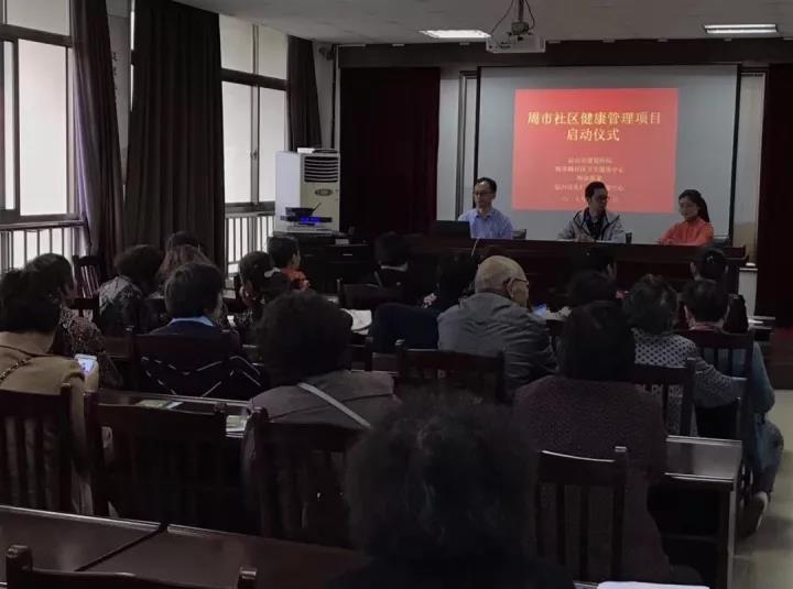 2017年10月12日上午,周市社区健康管理项目启动仪式暨高血压知识宣讲活动在周市社区居委会二楼顺利开展。周市社区陈益副书记、昆山市康复医院预防保健科科长、昆山市乐仁公益发展中心项目主管以及周市社区老年大学50余位学员共同参与了本次活动。