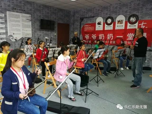 2017年10月28日,在乐助社工的邀请下,钱建平老师和泰伯花苑第三社区的孩子们一起继续二胡音阶的基础练习。